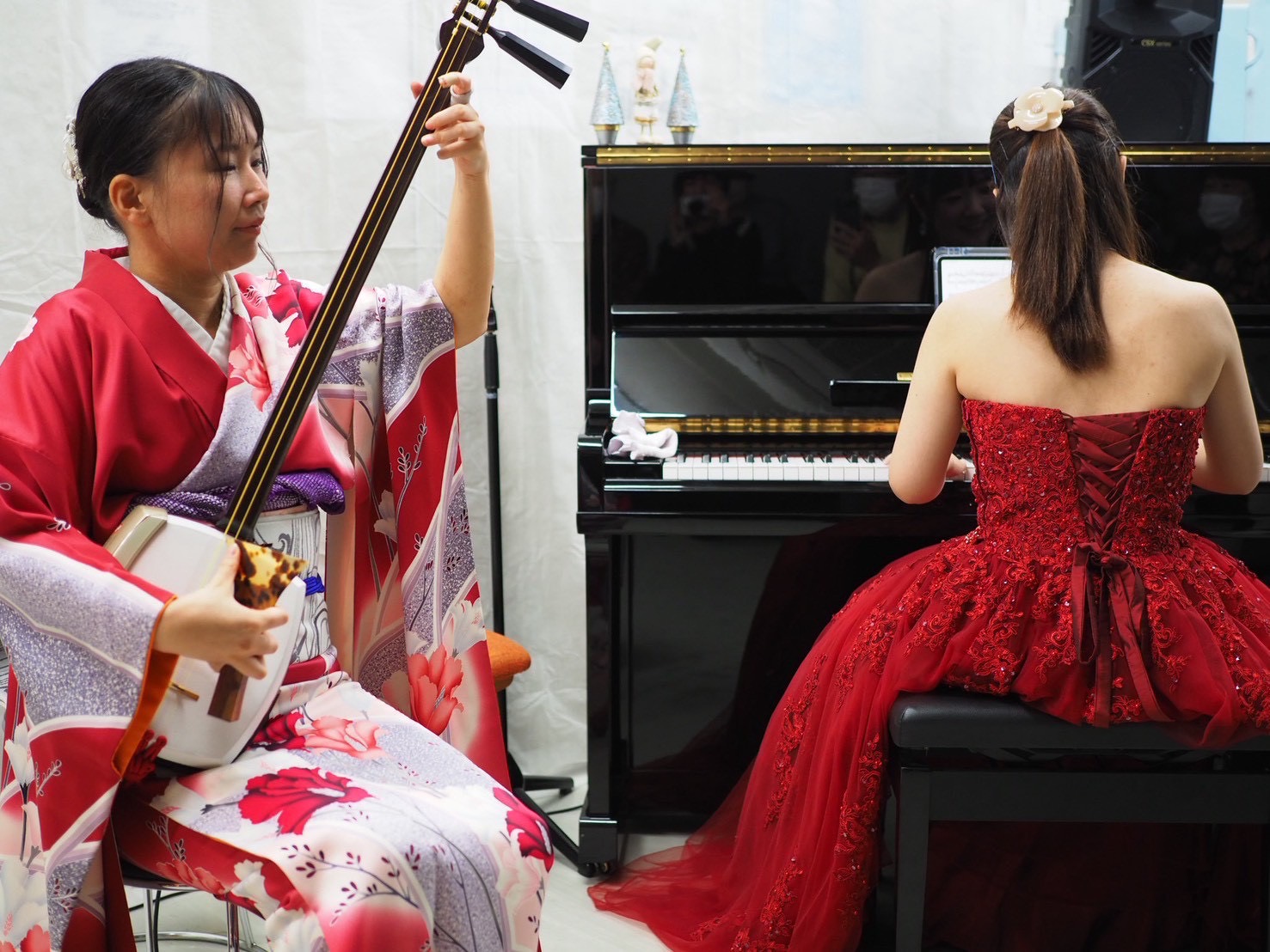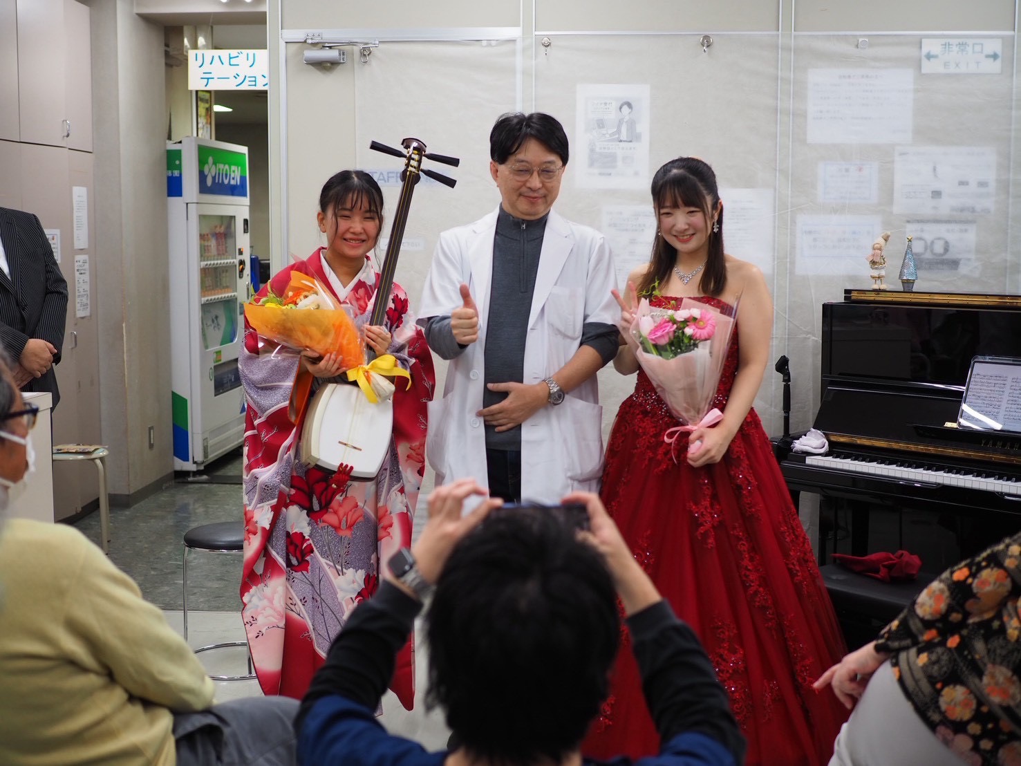 第47回 2025年11月20日(木)仁整形外科内 「クラシックピアノ&津軽三味線コンサート」 ピアノ:米本朱里 津軽三味線:澤田一咲 クリニック内にピアノを運び入れピアノと三味線のコンサートが実現しました! 小さな会場はピアノと三味線の音色に包まれ楽しいコンサートになりました!
