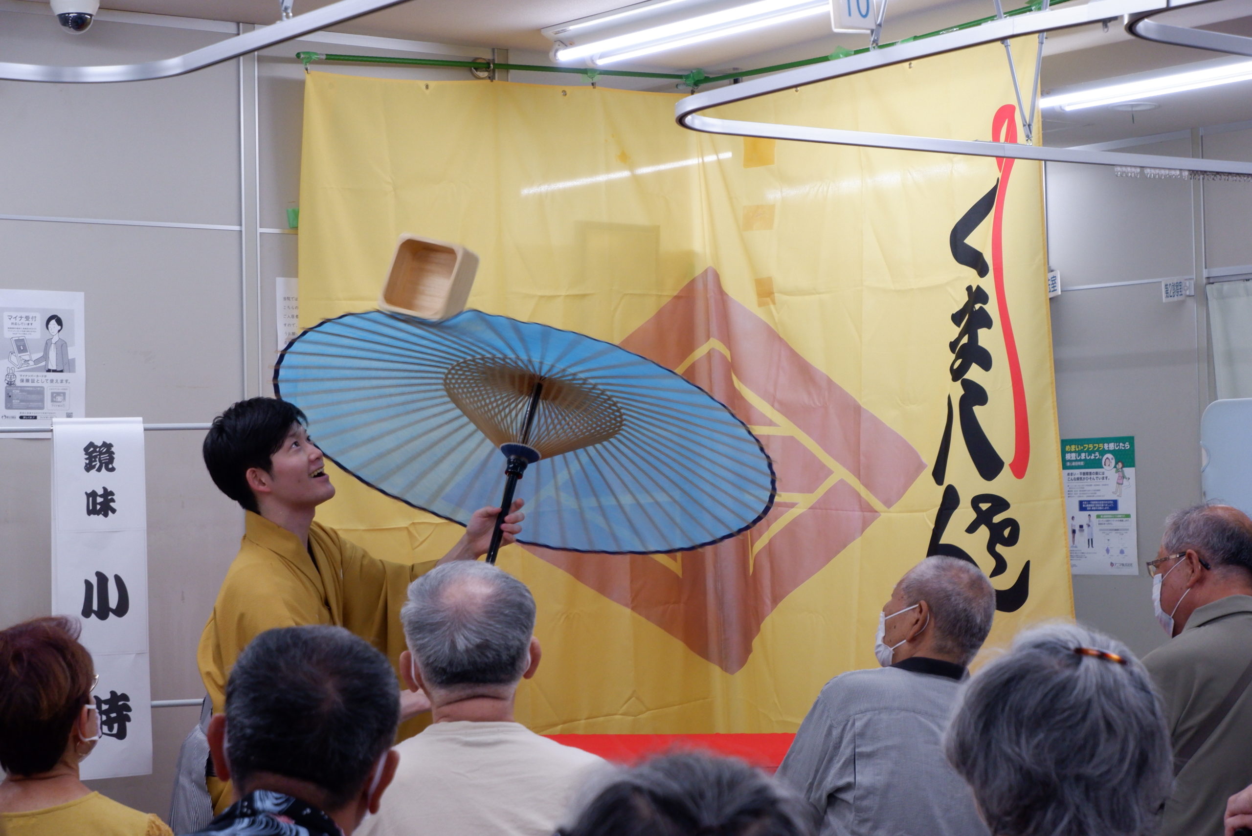 第44回 2024年6月27日(木)仁整形外科リハビリ室 「真打 四代目 山遊亭金太郎」落語公演 今回はクリニック内で落語公演を開催致しました。 「真打 四代目 山遊亭金太郎さん」「前座 桂れん児さん」「大神楽 鏡味小時さん」コロナ禍以降4年ぶりのウェルカムエブリバディコンサートをお三方が盛り上げて下さりました。
